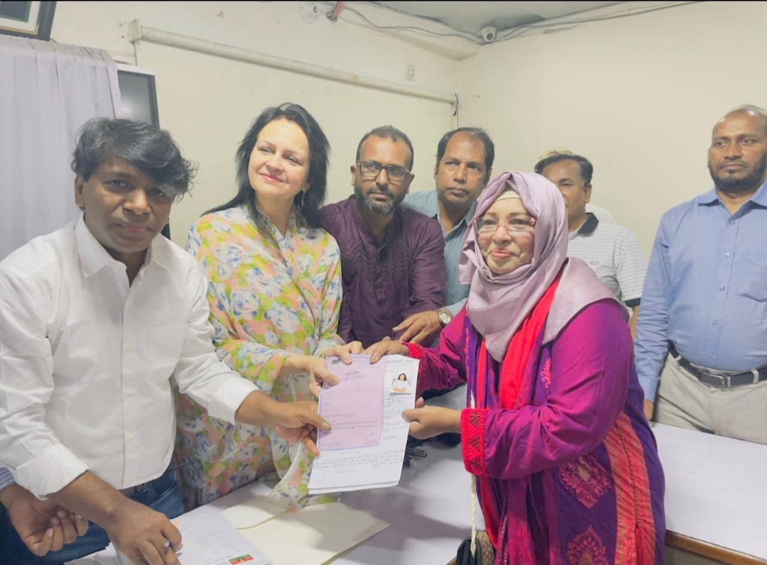 নয়াপল্টনে বিএনপির কার্যালয়ে সংরক্ষিত নারী আসনে মনোনয়ন ফরম জমা দিলেন মিরা খাঁন